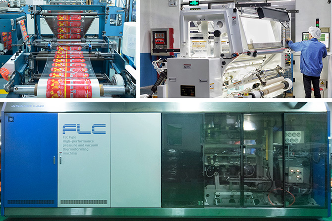 食品包裝膜:和好環(huán)保擁有3臺九色印刷設(shè)備,以及多臺干式復(fù)合和無溶劑復(fù)合機,所有產(chǎn)品必須經(jīng)過品檢機檢驗后方可包裝出貨。